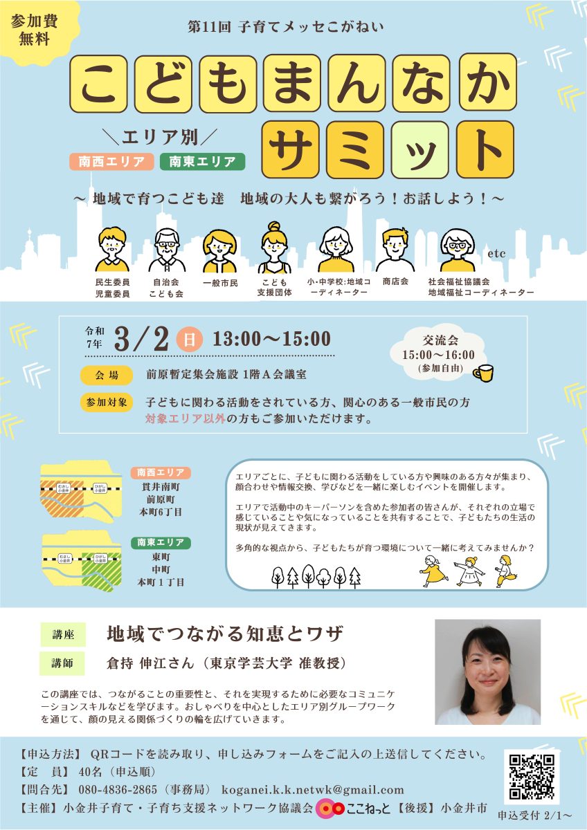 【イベント報告】【報告】第11回子育てメッセこがねい 「こどもまんなかサミット~地域で育つこども達 地域の大人も繋がろう!お話しよう!~」